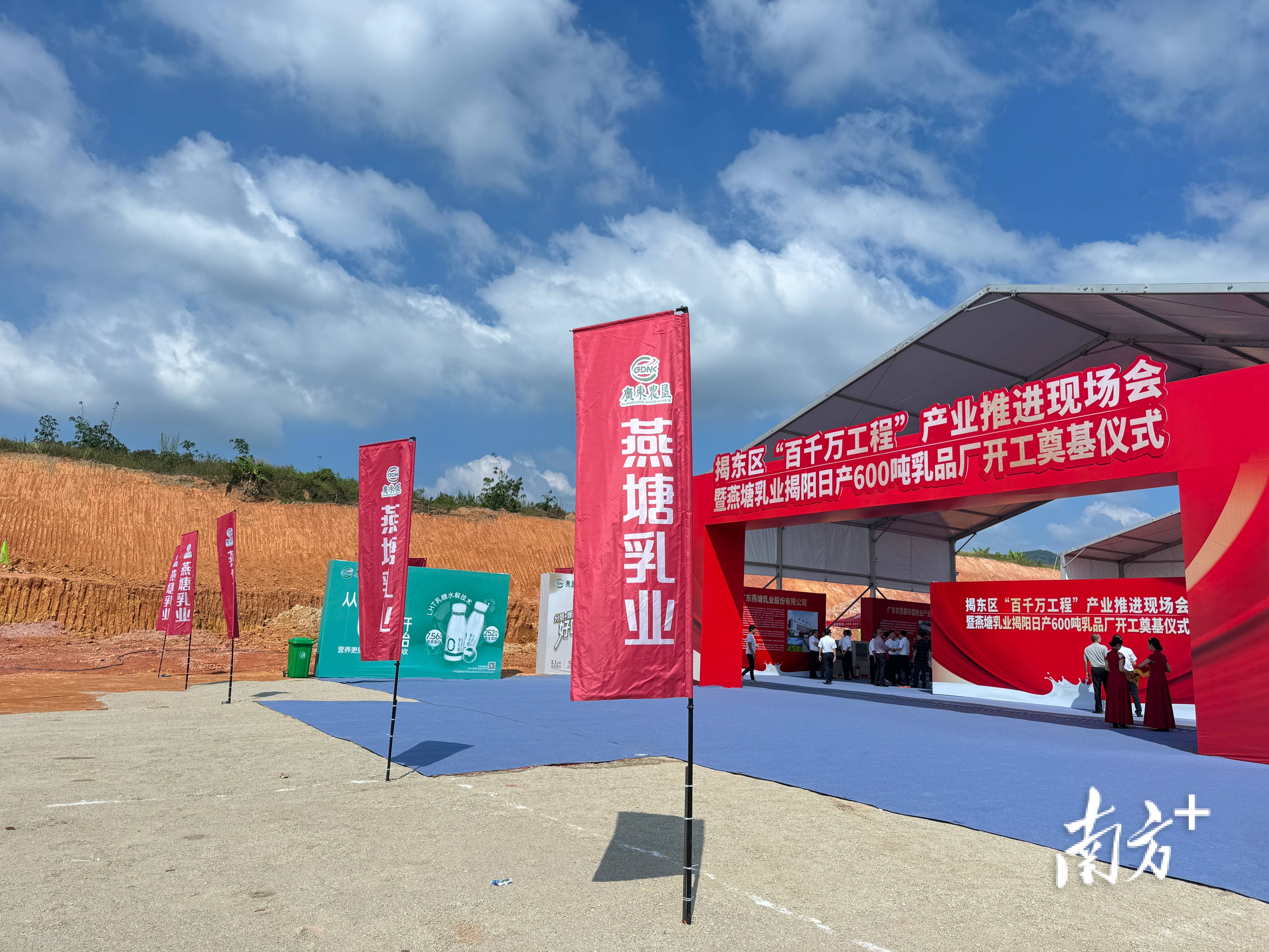 揭阳日产600吨现代化乳品厂位于揭阳市国家级揭东区经济开发区新型工业园,总建设用地面积约12.5万㎡,一期总建筑面积5.3万㎡,首期总投资超过6亿元,以“智能高效、节能环保、行业示范、精准投资、包装灵活”的先进理念设计,引进国际领先的生产线,主要生产常温液态奶、低温液态奶、冰淇淋、奶酪等产品,建成后将是广东乃至华南地区最先进的乳品加工厂之一,预计于2027年7月投产。
