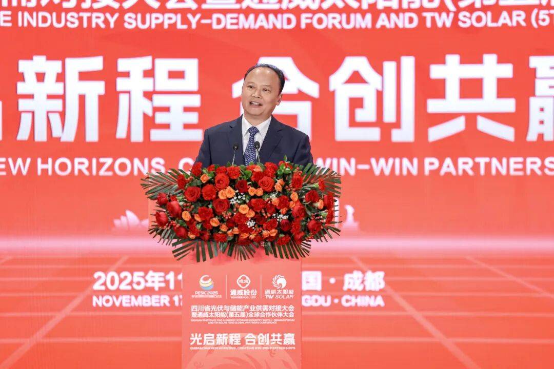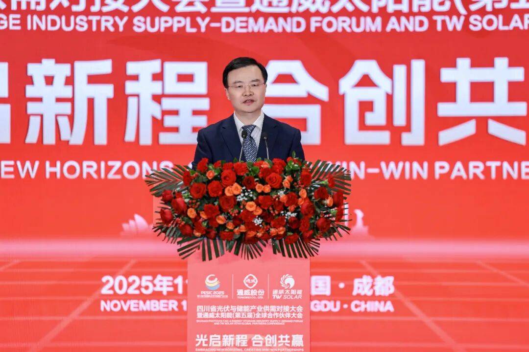 成都市双流区委书记钟静远致辞表示,通威作为全球光伏行业的领军企业、四川本土制造业首家世界500强企业,一路高歌猛进、向新突破,不断刷新通威速度、成都速度,为双流高质量发展作出了突出贡献。当前,光储行业正处于深度调整期,相信光储融合定能增强产业韧性,相信制造引领定能推进健康发展,相信政企同行定能穿越行业周期。双流将一如既往把光伏作为特色优势产业,把企业作为城市合伙人,持续推动光伏产业高质量发展,助力成都加快打造千亿级光伏产业集群。