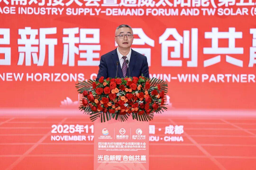 通威太阳能总经理周华致辞表示,十二年来,通威太阳能从87人的初心出发,到电池累计出货量突破300GW,连续八年稳居全球第一;从建成全球首条工业4.0电池生产线G智慧工厂,再到获评全球光伏电池行业首家“灯塔工厂”。这些成绩的取得,离不开各级政府的关怀与支持,也离不开合作伙伴的信任与同行。通威太阳能将继续以“创新驱动、稳健增长”为核心,深耕智能制造,锻造卓越产品,夯实管理基础,拓展全球市场,以更加开放的姿态、更加务实的行动,携手政府、行业与社会各界,共创价值、共赢未来。