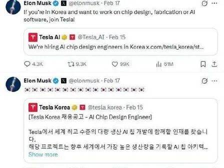 此前,特斯拉韩国已正式发布 AI 芯片设计工程师岗位,称正在招募人才加入可量产的一流 AI 芯片研发团队。此次招聘较为特别,将以候选人曾解决的三项最具挑战性技术难题作为核心评估依据,相关招聘信息也由特斯拉 AI 官方账号同步发布。